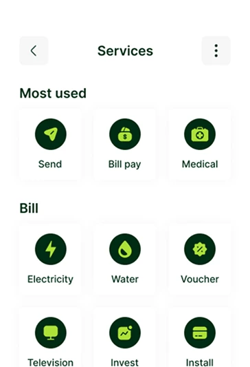 You can send and recieve money from users of our bank and also users from other banks.
